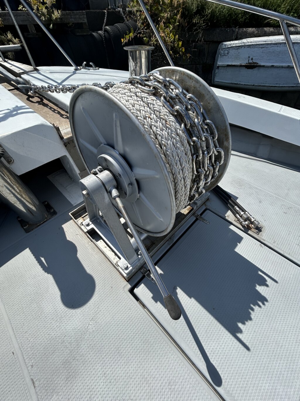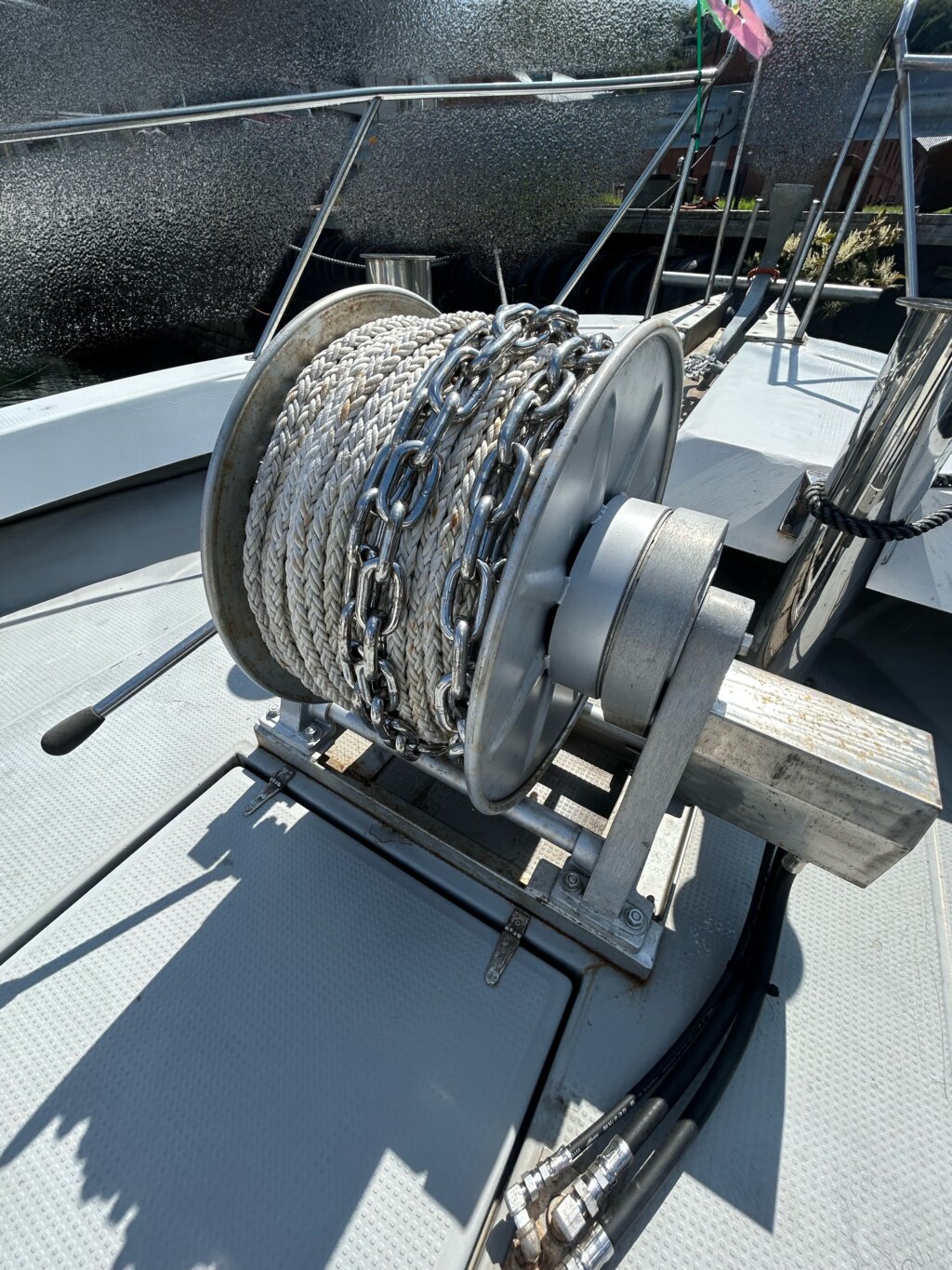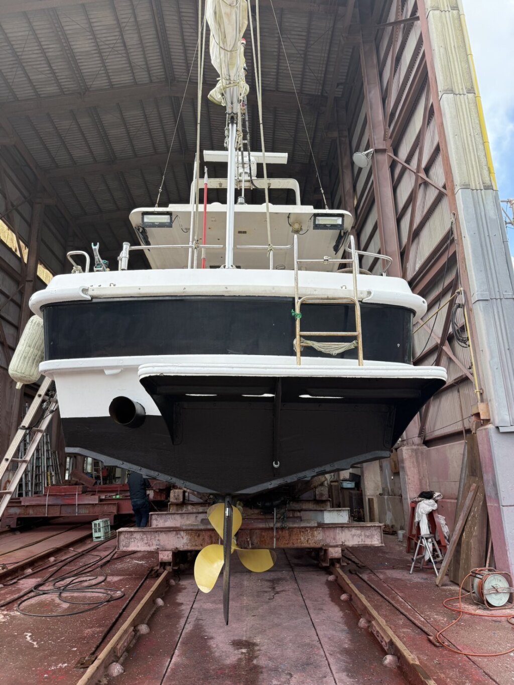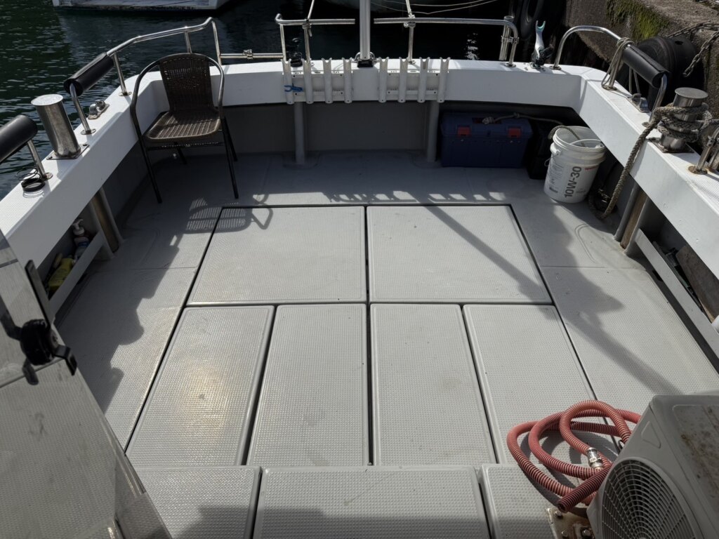 令和6年にブルワーク全周SUS手すり、ローリングチョップ、油圧アンカー、スパンカーを取り付けられ、