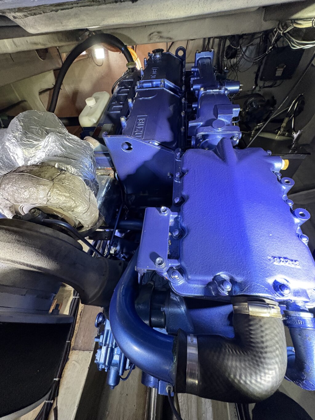 エンジンはいすゞのUM6RB1TCGが搭載されており、巡航1800回転で約22ノット、2300回転で最高約29ノット出るとの事です。