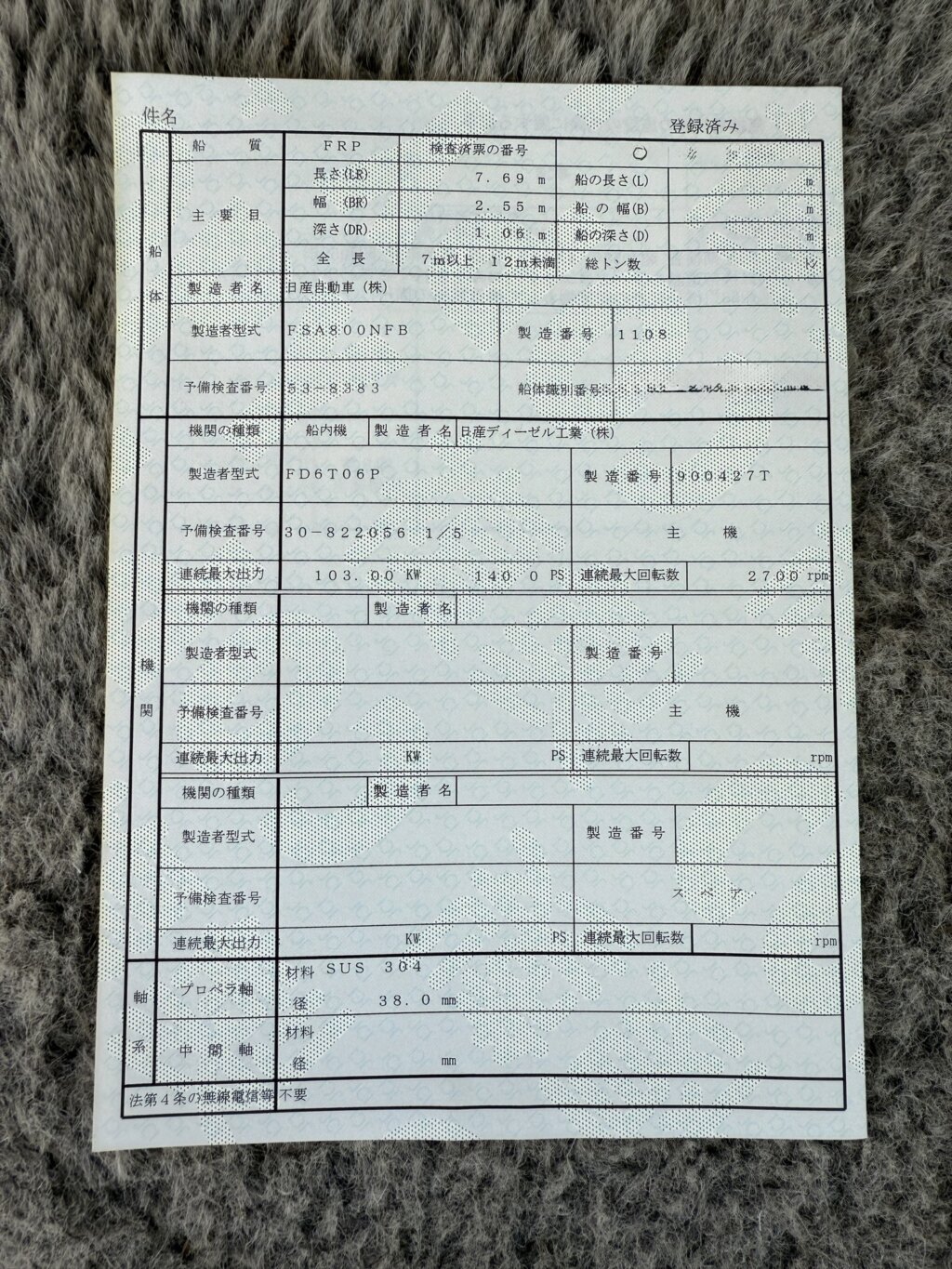オーナー様の中には問題点を把握していなかったり、不具合箇所がお話から漏れてしまう事もあるかもしれませんので、 実艇の状態と違う箇所が存在する可能性がありますし、 整備履歴・修復歴や艇の過去の状態などに関しては、中古船グッドでは把握できておりません。