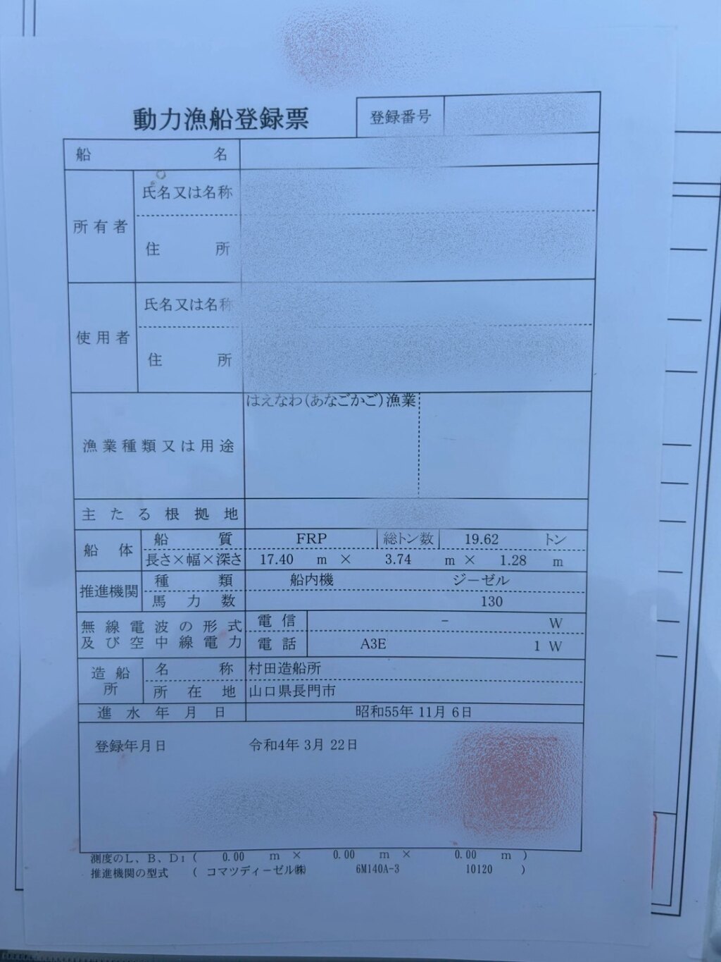 進水年月は昭和55年(1980年)11月です。