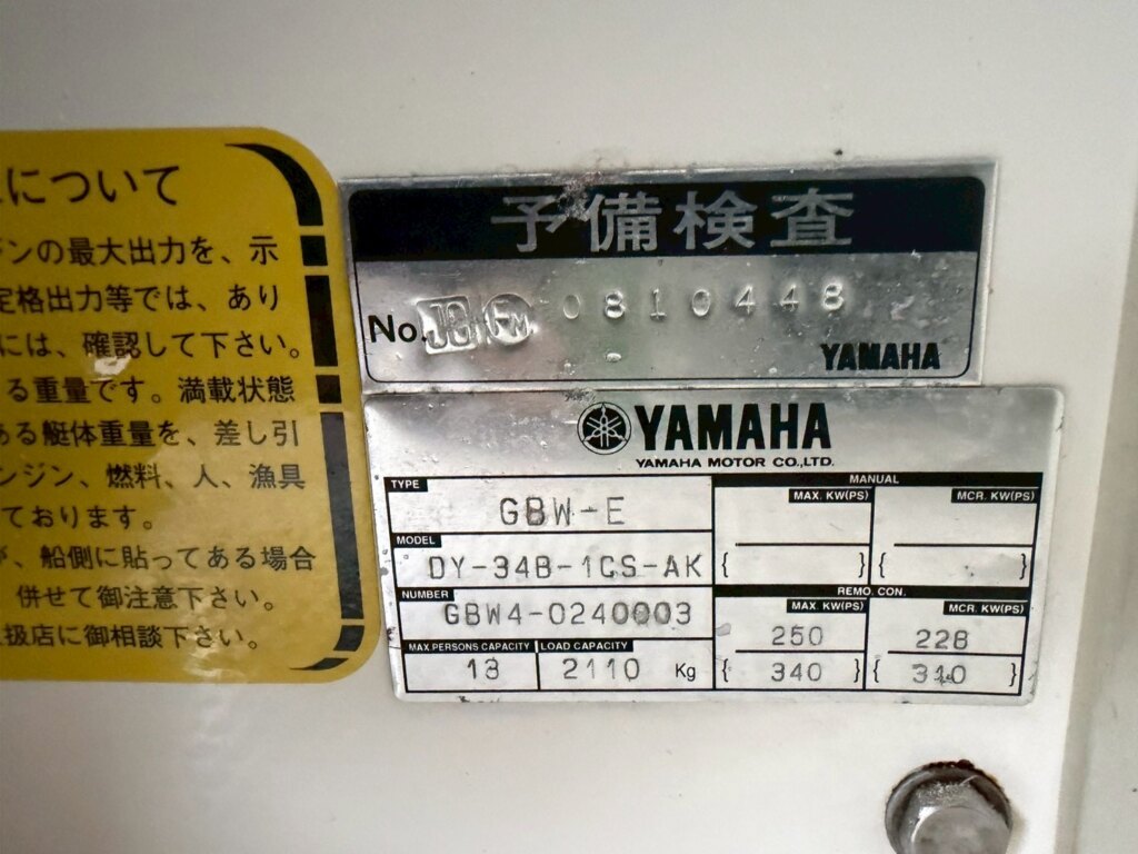今回ご紹介の船はヤマハDYー34Bー1CSーAK(GBWーE)です。